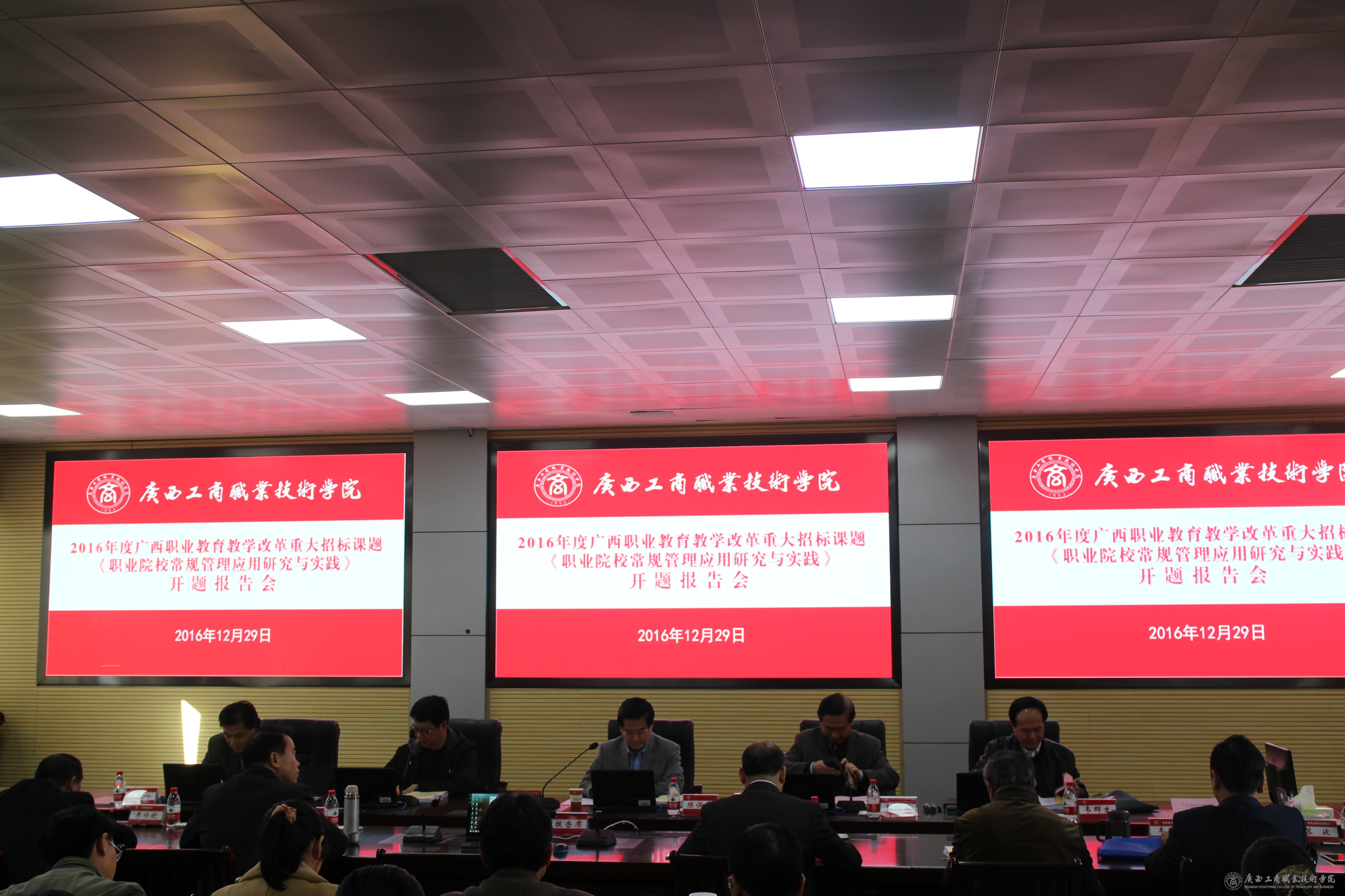 根据自治区教育厅《关于公布2016年度广西职业教育教学改革研究重大招标课题评审结果的通知》(桂教职成﹝2016﹞32号),我院中标承担了《职业院校常规管理应用研究与实践》课题,12月29日下午,开题报告会在我院本部举行。