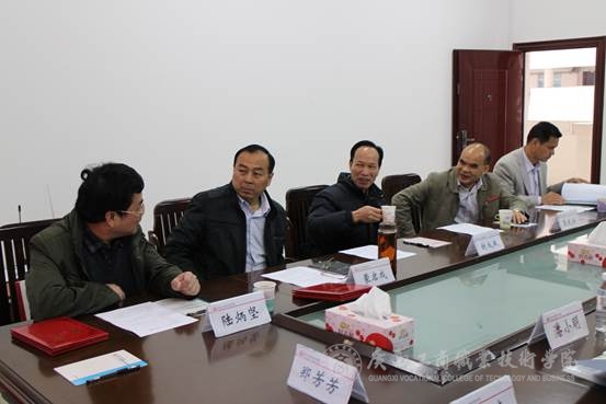 为进一步落实自治区社科联七届二次会议暨2015年全区社科联工作会议精神,加强学会各副会长单位的沟通联系并完善年度工作计划,2015年3月10日下行,由我院承办的广西粮食经济学会2015年第一次会长办公会在学院校本部顺利召开。广西粮食经济学会法人代表封成斌副会长及我院社科联蒙启成主席、广西粮油科学研究所周晓所长、广西粮油质量检验站陆炳坚站长、南宁市储备粮管理有限责任公司周丽洁总经理、广西经贸高级技工学校校长助理叶艾仲等学会副会长参与会议。此次会议云集学会、企业、学校三方精英,共同商讨学会2015年工作重点,旨在加强三方协作,更好促进我区粮食经济及粮食行业科学发展。会前,学院覃武云书记会见了封会长一行,并对学会领导的莅临指导表示热烈欢迎,对学会工作表示鼎力支持。