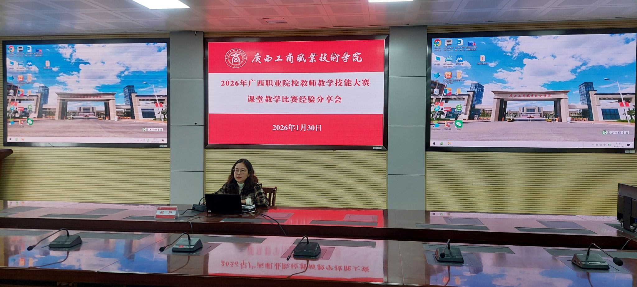 为扎实推进2026年广西职业院校教师教学技能大赛课堂教学比赛备赛工作,全面提升参赛作品质量与教师教学核心能力,2026年1月30日上午,我校在鹏飞校区2119会议室召开经验分享会。学校郑华副校长、教务处领导、各二级学院主要领导、参赛团队全体成员,以及各二级学院骨干教师代表参加了会议。