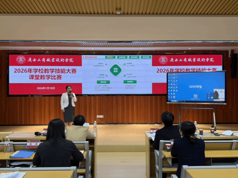 为深入贯彻落实新时代教师队伍建设要求,深化课堂教学改革,提升教师专业素养与教学创新能力,1月18日在鹏飞校区2145报告厅举办了2026年教师教学技能大赛课堂教学比赛。本次共有来自8个二级学院的11支队伍参赛,吸引了众多教师到现场观摩比赛。