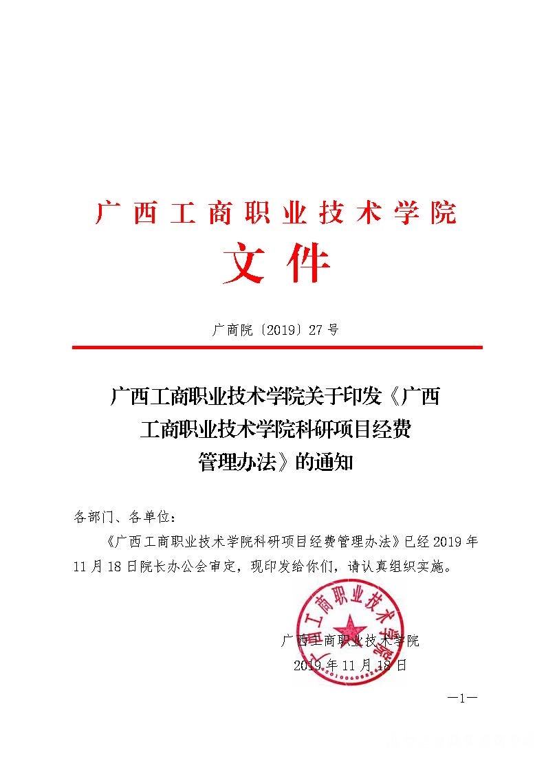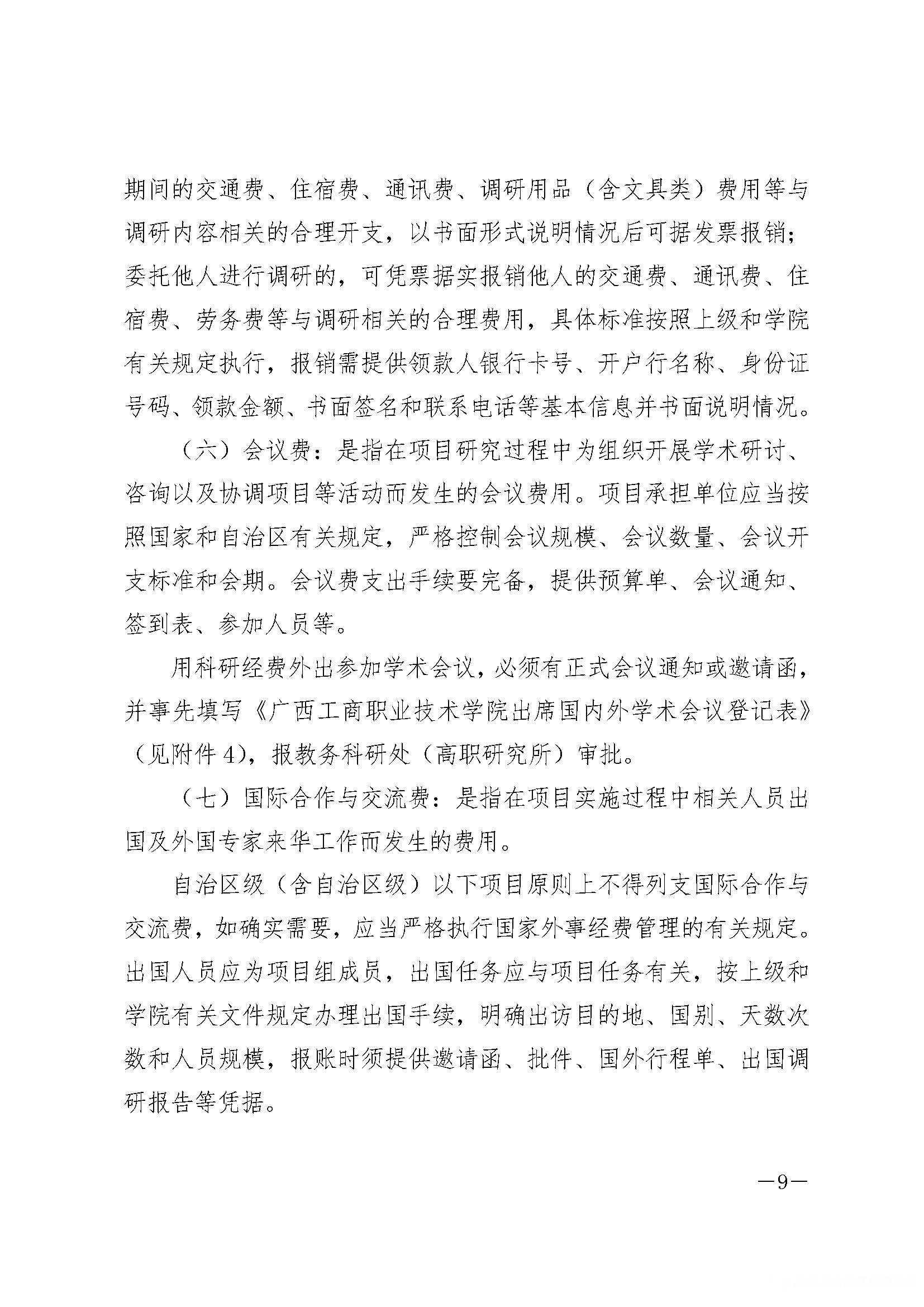附件1:广西工商职业技术学院科研项目经费使用责任书